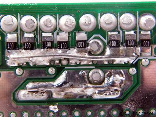 比如上圖就是一顆1500瓦電源的檢流電阻,8個(gè)1mΩ的電阻分別為6路12V輸出和3.3V與5V做過(guò)流保護(hù)。