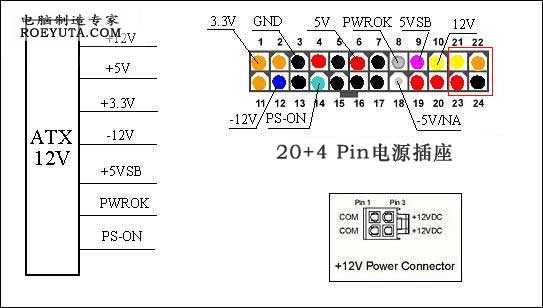 電腦電源由AC或DC輸入后,轉(zhuǎn)換出多組電壓分別為:+3.3V,+5V,+12V,-5V,-12V,+5VSB,還有一些功能接線如:PS-ON,PWR-OK,那么這些輸出都有哪些功能呢,請(qǐng)看下面的具體說(shuō)明。