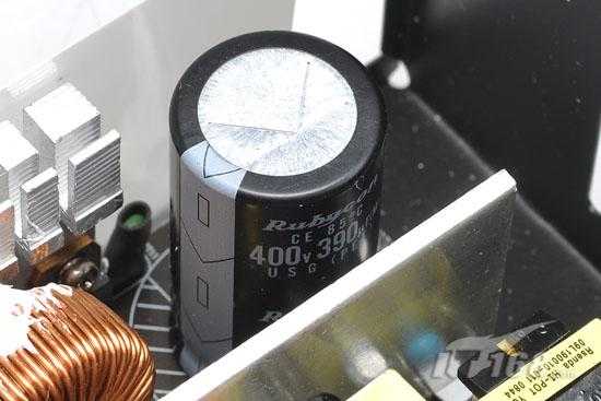 榮盛達(dá)EPSpower660采用了單顆PFC電容設(shè)計(jì),選材方面應(yīng)用了日系知名的紅寶石高壓濾波電容,單顆400V 390uF的電容容量對(duì)于額定功率為500W的電源來(lái)說(shuō),用料還存在一定的余量。