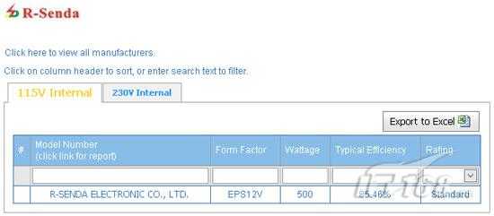 每當筆者遇到做工用料較為優(yōu)秀的產品,總會去聯(lián)想這款產品是否擁有80PLUS認證性能,當然這款榮盛達EPSpower660電源也不例外。當筆者登陸80PLUS官網,查詢榮盛達(R-Senda)品牌電源的時候,發(fā)現(xiàn)確實有一款產品通過了80PLUS白牌認證。這款通過認證的500W電源與EPSpower660規(guī)格非常相似。
