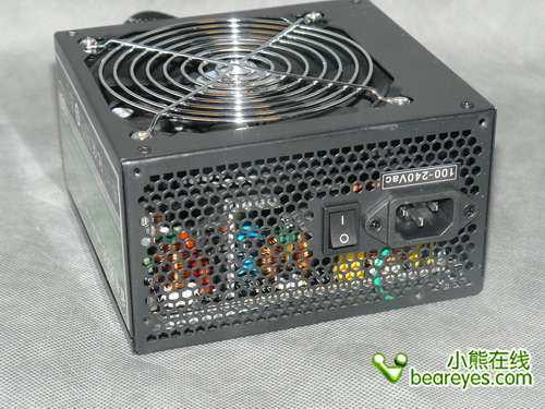 電源擁有主開關(guān)設(shè)計,直接支持100-240V電源輸入,全球通用。透過六角形的散熱孔,可以看到部分電源內(nèi)部結(jié)構(gòu)。后文我們將對其進行拆解分析。