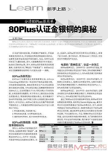 80Plus之所以受關注是因為它與我們的生活息息相關,但是對于它該標準的建立和未來的升級,不少人還不是很清楚,為此我們覺得有必要系統(tǒng)地介紹一下80Plus整個標準的建立以及路線圖,使《微型計算機》的讀者對80Plus有一個完整認識,這將對你以后選購